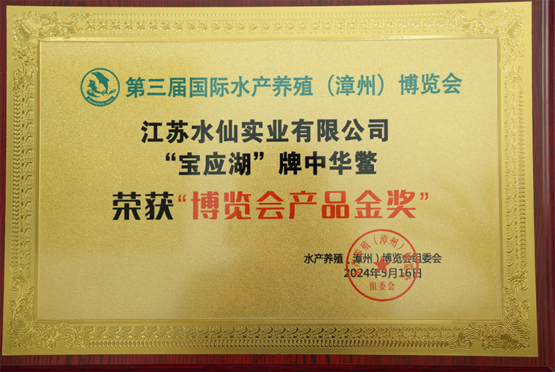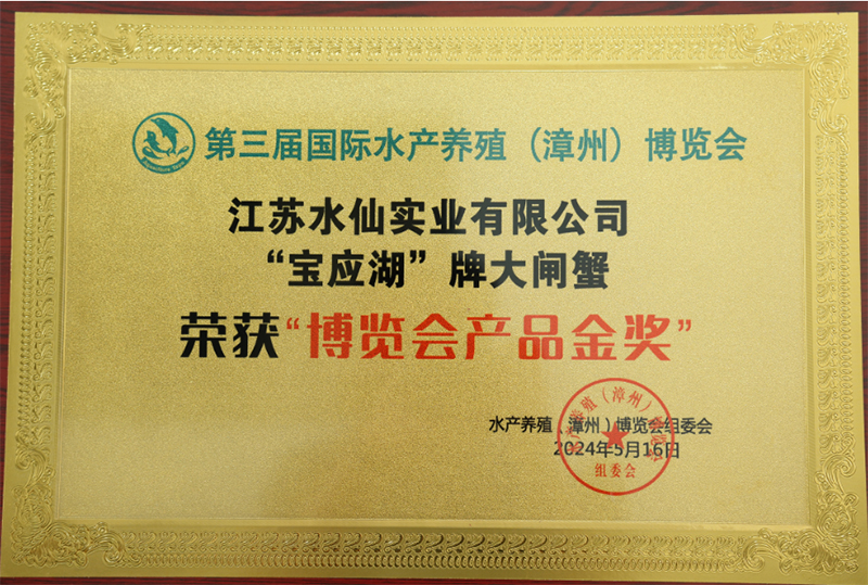 2024國際水產養殖(漳州)博覽會在漳州·龍海食品博覽園舉辦。江蘇水仙實業有限公司不負眾望,參展的主打產品深受專家好評和消費者青睞,“寶應湖”大閘蟹、“寶應湖”中華鱉分別榮獲“博覽會產品金獎”。