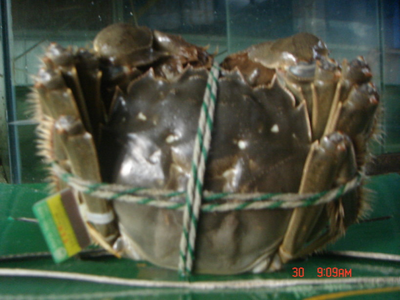 •     中華絨螯蟹,又稱河蟹、大閘蟹,屬于節(jié)肢動(dòng)物門→甲殼綱→十足目→方蟹科→絨螯蟹,中華絨螯蟹在食性上具有五個(gè)方面的特點(diǎn),即廣譜性、暴食性、互殘性、耐饑性和階段性。中華絨螯蟹肉味鮮美,營(yíng)養(yǎng)豐富,是酒店、飯店宴席上的高檔水產(chǎn)品之一,并以其青背、白肚、金爪、黃毛、膏肥、黃豐的天然優(yōu)質(zhì)品質(zhì)享譽(yù)海內(nèi)外。其身體分兩部分,頭胸部和腹部,附有步足5對(duì)。每百克含蛋白質(zhì)14克,脂肪5.9克,富含鈣、磷、鐵、維生素A、硫胺素、核黃素、碳水化合物、尼克酸等人體所需要的多種營(yíng)養(yǎng)成份,經(jīng)濟(jì)價(jià)值很高。目前中華絨螯蟹已成為我省淡水水產(chǎn)的主導(dǎo)產(chǎn)業(yè)。以DB32/609.1-2-2003有機(jī)蟹為執(zhí)行標(biāo)準(zhǔn),“寶應(yīng)湖”牌中華絨螯蟹多次被授予“江蘇名牌產(chǎn)品”和“江蘇名牌農(nóng)產(chǎn)品”稱號(hào),蟬聯(lián)三屆獲得“中國(guó)十大名蟹”的稱號(hào),并多次獲得全國(guó)各類展會(huì)比賽金獎(jiǎng)。